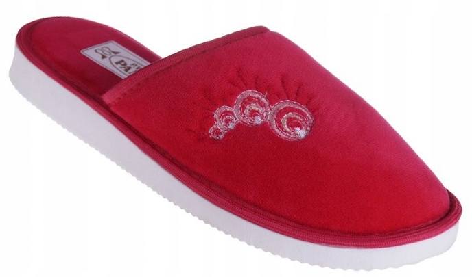 Kapcie w kolorze różowym. Palce zakryte. Podeszwa z lekkiej pianki. Przewiewny materiał z którego zostały wykonane idealnie sprawdzi się w codziennym użytkowaniu. Modne wzornictwo.