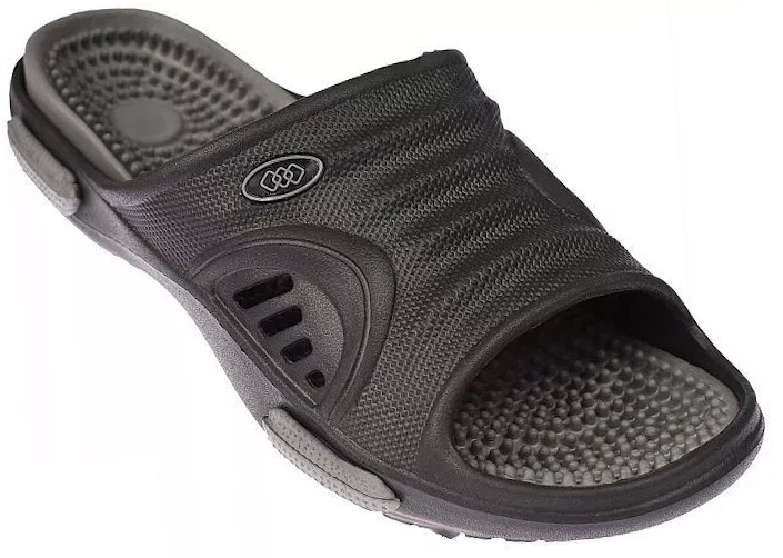 Obuwie zostało wykonane z wysokiej jakości materiałów, jako klapki z kolcami do masażu stóp. Idealne dla osób dbających o własne zdrowie.