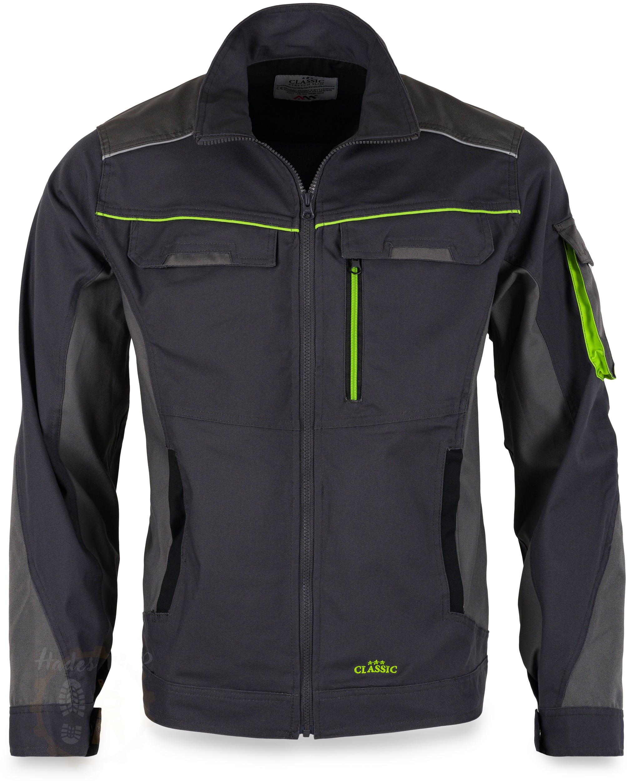 Kurtka ochronna CLASSIC STRETCH SLIM nowej generacji. Wygodny i nowoczesny fason Slim doskonale dopasowuje się do sylwetki, w żaden sposób nie krępując ruchów, dzięki zastosowaniu materiału z dodatkiem elastanu. Wykonana ze specjalistycznej tkaniny o składzie: 60% bawełna, 38% poliester, 2% spandex o gramaturze 260 +/-10 g/m2 oraz mocnym zwartym splocie.
