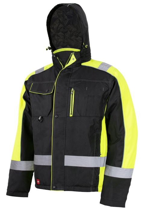 KURTKA ROBOCZA ZIMOWA OCIEPLANA Z KAPTUREM OSTRZEGAWCZA ODBLASKOWA BHP