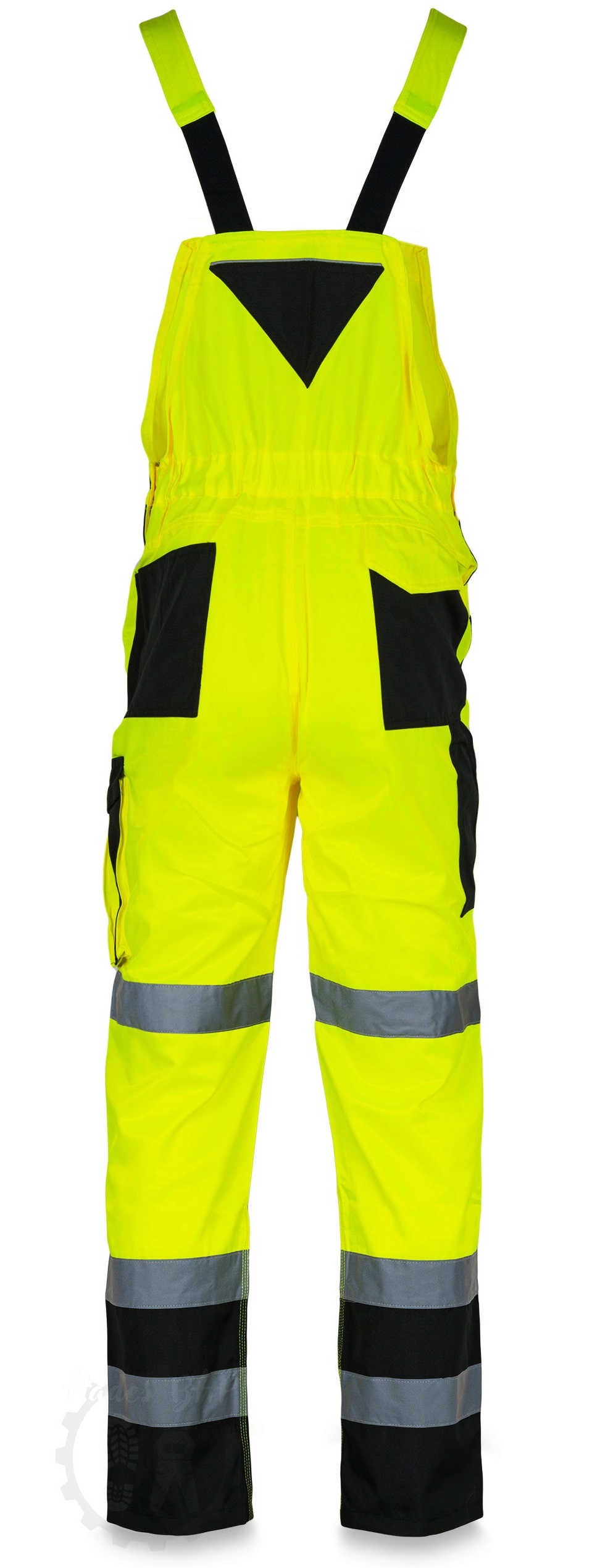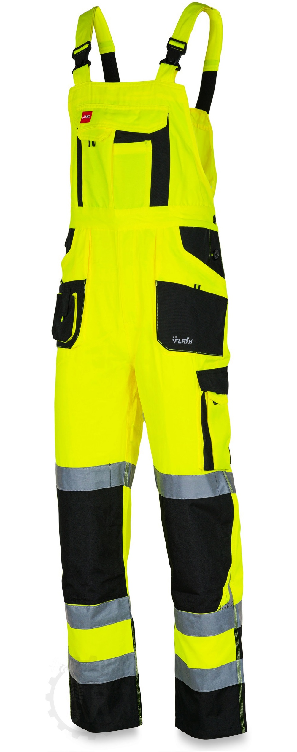 Spodnie ogrodniczki ochronne FLASH to wysokiej klasy certyfikowana odzież ostrzegawcza w kolorze żółtym o intensywnej widzialności.
