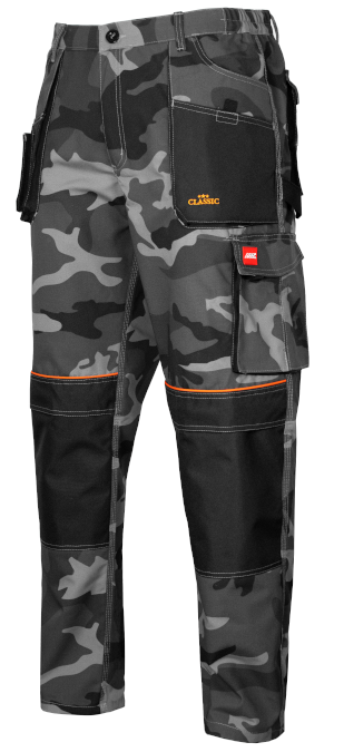 Spodnie ochronne CLASSIC CAMOU, do pasa, o wyjątkowo atrakcyjnym wzornictwie i doskonałej funkcjonalności. Wykonane z bardzo wytrzymałej tkaniny canvas o składzie 65% poliestru i 35% bawełny o gramaturze 260 +/-10 g/m 2 oraz mocnym zwartym splocie.