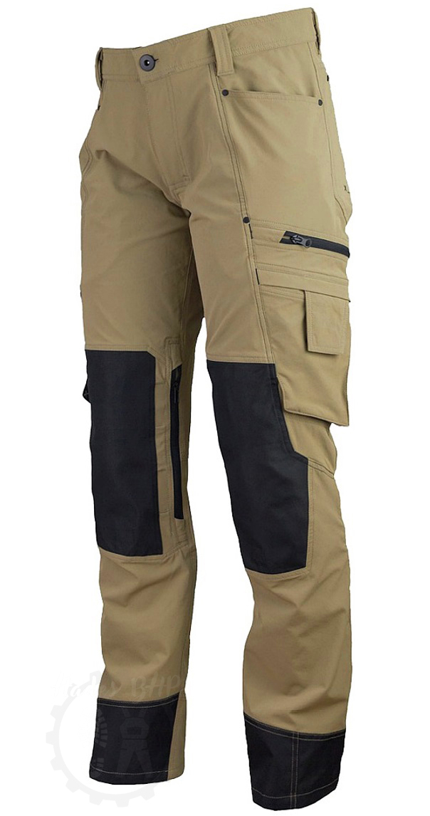 Spodnie outdoor to mocne przewiewne spodnie wykonane z bardzo wytrzymałej tkaniny RIP STOP o gramaturze 190g/m, nylon 93%, spandex 7%. Zastosowano w nich dodatkowe wzmocnienia, rygle i mocne szwy. Cechują się wysoką odpornością na rozdzieranie i tarcie. Wzmocnienia z materiału OXFORD na kieszeniach i kolanach dodatkowo zabezpieczają miejsca szczególnie narażone na przetarcia. Kieszenie kolanowe pozwalają na zastosowanie wymiennych nakolanników. Dyskretne elementy odblaskowe zwiększają bezpieczeństwo użytkownika po zmroku. Nowoczesny design sprawdzi się doskonale w pracy jako odzież robocza oraz outdoorowe spodnie bojówki na co dzień. Elastyczny materiał gwarantuje wysoki komfort użytkowania